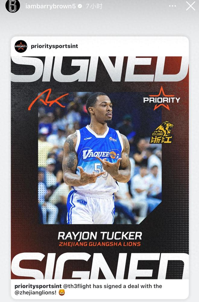 雷瓊-塔克,是第一次來CBA打球??赡芎芏嗲蛎圆恢?,塔克是布朗推薦給廣廈俱樂部的!塔克在8月份的時(shí)候就在社媒宣布加盟CBA浙江廣廈俱樂部,布朗還轉(zhuǎn)發(fā)了這條消息,新賽季兄弟倆再次并肩作戰(zhàn)。