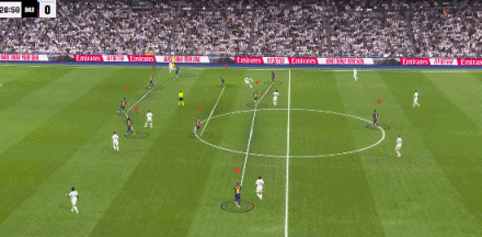 第43分鐘,米利唐頭球助攻,貝林厄姆推射破門,皇馬2-1巴薩!