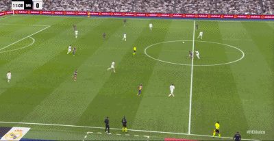 第22分鐘,貝林厄姆擺脫后送出精妙直塞,姆巴佩單刀破門,皇馬1-0巴薩!