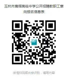 11月28日前,有意應(yīng)聘人員可先將電子版簡(jiǎn)歷、成績(jī)單等個(gè)人材料以“應(yīng)聘崗位+姓名+聯(lián)系電話”形式命名,發(fā)至育輝高級(jí)中學(xué)郵箱(yhgjzx2021@163.com),并填寫《玉林市育輝高級(jí)中學(xué)公開招聘教師意向報(bào)名信息表》(掃附件3二維碼進(jìn)入填寫頁(yè)面),提交報(bào)名信息后掃描彈出的二維碼加入招聘QQ群,但最終以現(xiàn)場(chǎng)報(bào)名為準(zhǔn)。