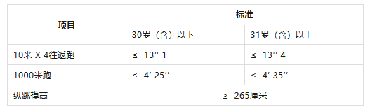 報考人員須參加全部三項體能測評。參加者凡有其中一項不達標或放棄,視為體能測評不合格。體能測評合格,方可進入下一環(huán)節(jié)。