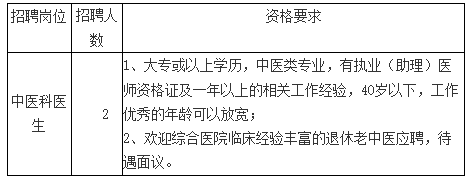 我院因業(yè)務(wù)發(fā)展需要,決定面向社會公開招聘中醫(yī)科醫(yī)生2人,現(xiàn)將有關(guān)事項(xiàng)公告如下: