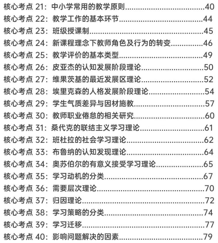 匹配考綱要求,精選50個(gè)核心考點(diǎn):銘師組團(tuán)精研,基于考綱收錄《教育學(xué)與教學(xué)法基礎(chǔ)知識(shí)》《教育心理學(xué)與德育工作基礎(chǔ)知識(shí)》核心考點(diǎn),重點(diǎn)突出,幫助考生學(xué)習(xí)記憶。