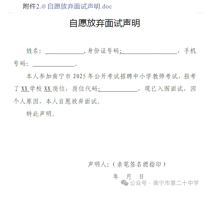原文標(biāo)題:南寧市第二十中學(xué)2025年公開考試招聘中小學(xué)教師面試入圍人選資格審查通知