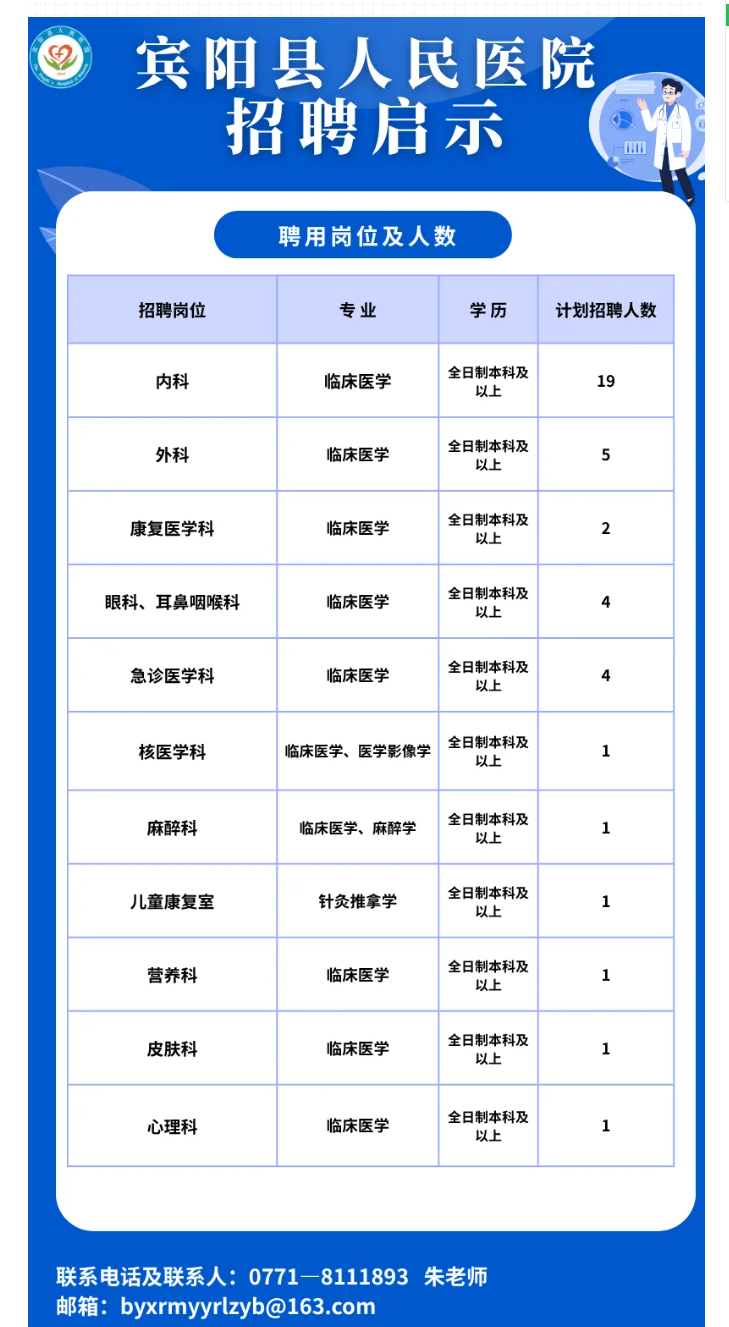 賓陽(yáng)縣賓州鎮(zhèn)新賓仁愛(ài)街137號(hào) 賓陽(yáng)縣人民醫(yī)院人力資源部