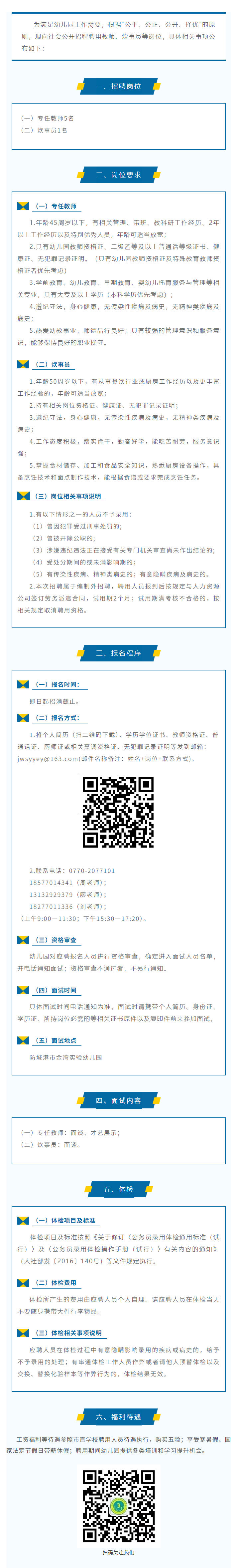 2025年防城港市金灣實驗幼兒園秋季學期聘用教師、炊事員崗位招聘公告
