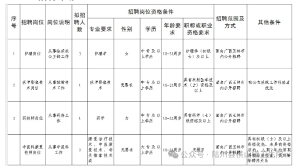 因工作需要,陸川縣橫山鎮(zhèn)衛(wèi)生院向社會(huì)公開(kāi)招聘編外工作人員。具體招聘事宜如下: