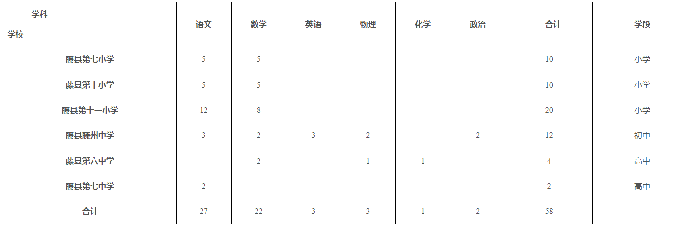5.開考比例:各學(xué)科崗位計劃競聘人數(shù)與通過報名資格審查的人數(shù)原則上需達(dá)到1:3的比例才能開考;如達(dá)不到1:3開考比例,確因工作急需補(bǔ)缺的,經(jīng)2025藤縣公開競聘縣城學(xué)校教師崗位工作領(lǐng)導(dǎo)小組研究同意,可按實際報名人數(shù)開考或適當(dāng)遞減比例開考。
