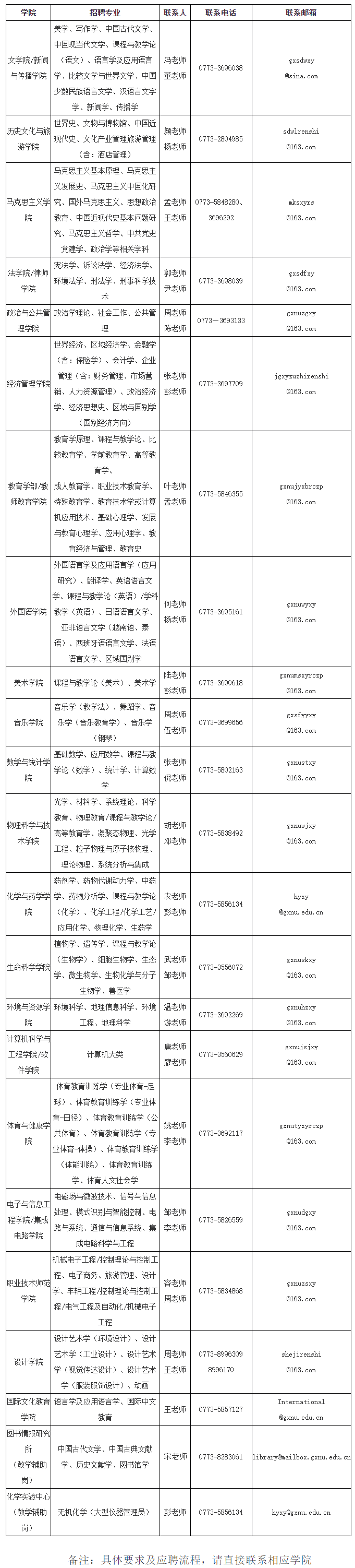 學(xué)校人事處聯(lián)系人:王老師、謝老師、鄧?yán)蠋?br /> 聯(lián)系電話(huà):0773-3690080,0773-3635102