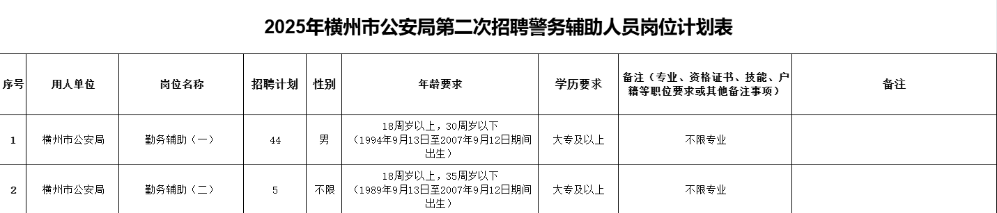 附件1.橫州市公安局2025年度第二次公開招聘警務(wù)輔助人員崗位計劃表