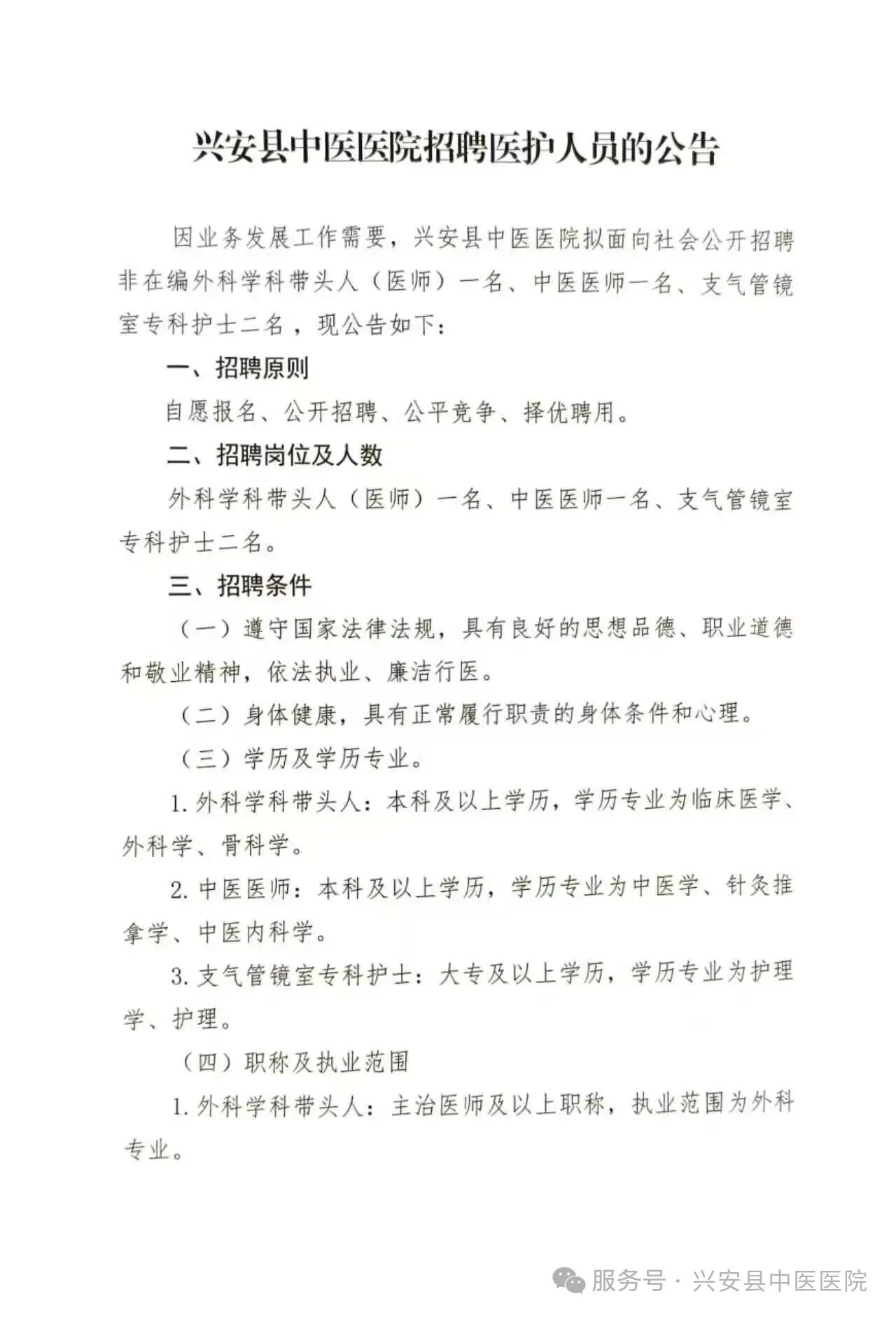 2026年興安縣中醫(yī)醫(yī)院招聘醫(yī)護人員的公告