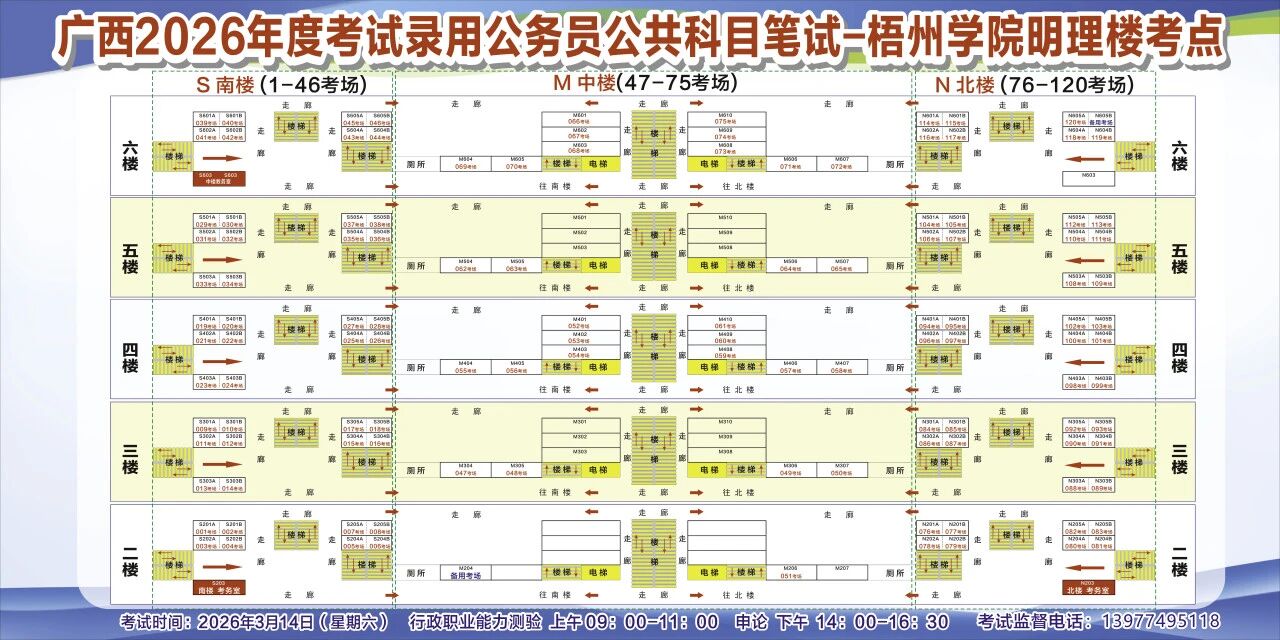 一、廣西2026年度考試錄用公務(wù)員(選調(diào)生)公共科目筆試將于3月14日舉行,梧州考區(qū)共設(shè)置10個考點,請考生提前熟悉各自考點位置、周邊環(huán)境及交通情況,考試當(dāng)天提前出門做好準(zhǔn)備,準(zhǔn)時參加考試。