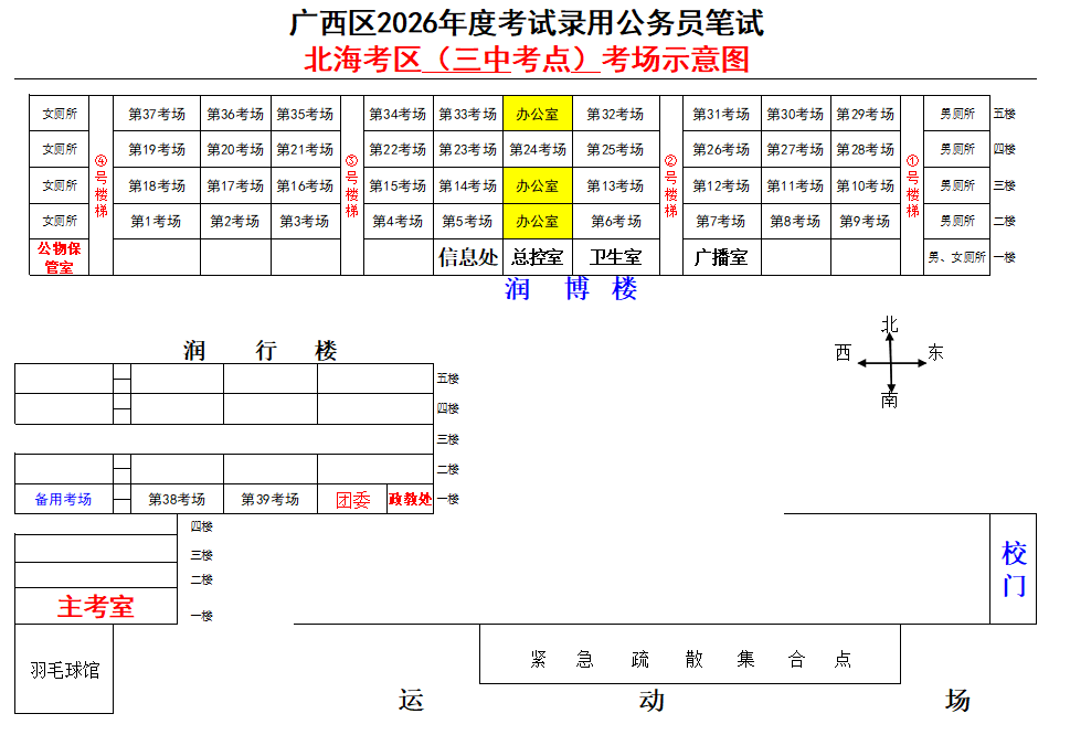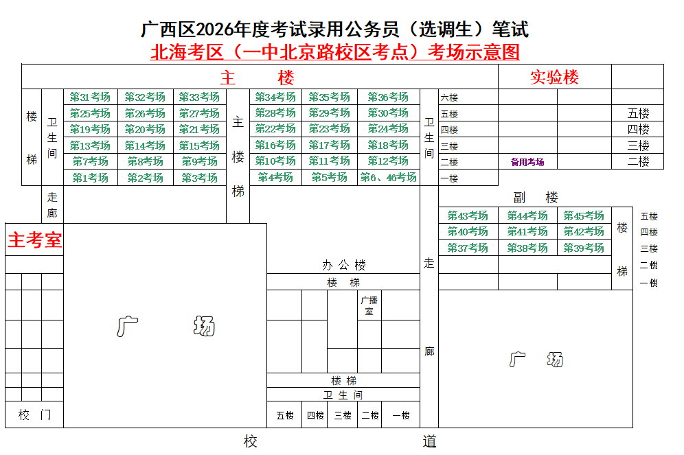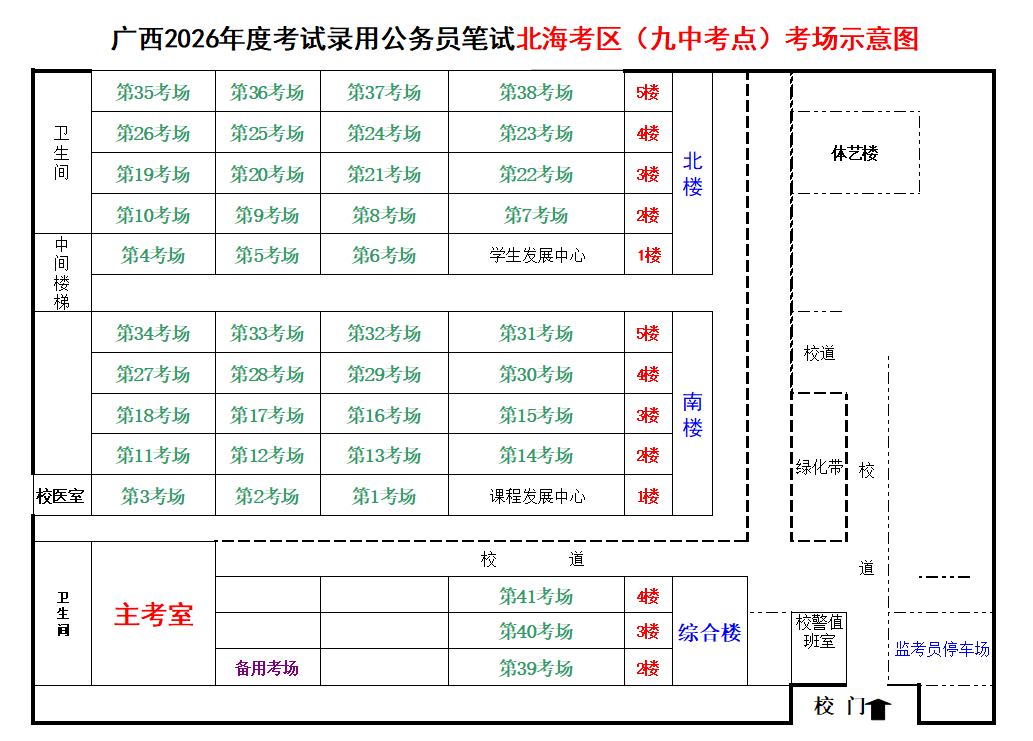 北??紖^(qū)共設(shè)置6個考點(diǎn),具體考點(diǎn)考場布置分別如下: