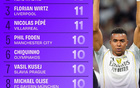 本賽季歐冠創(chuàng)造機會排行榜:姆巴佩、居萊爾、維爾茨前三 -